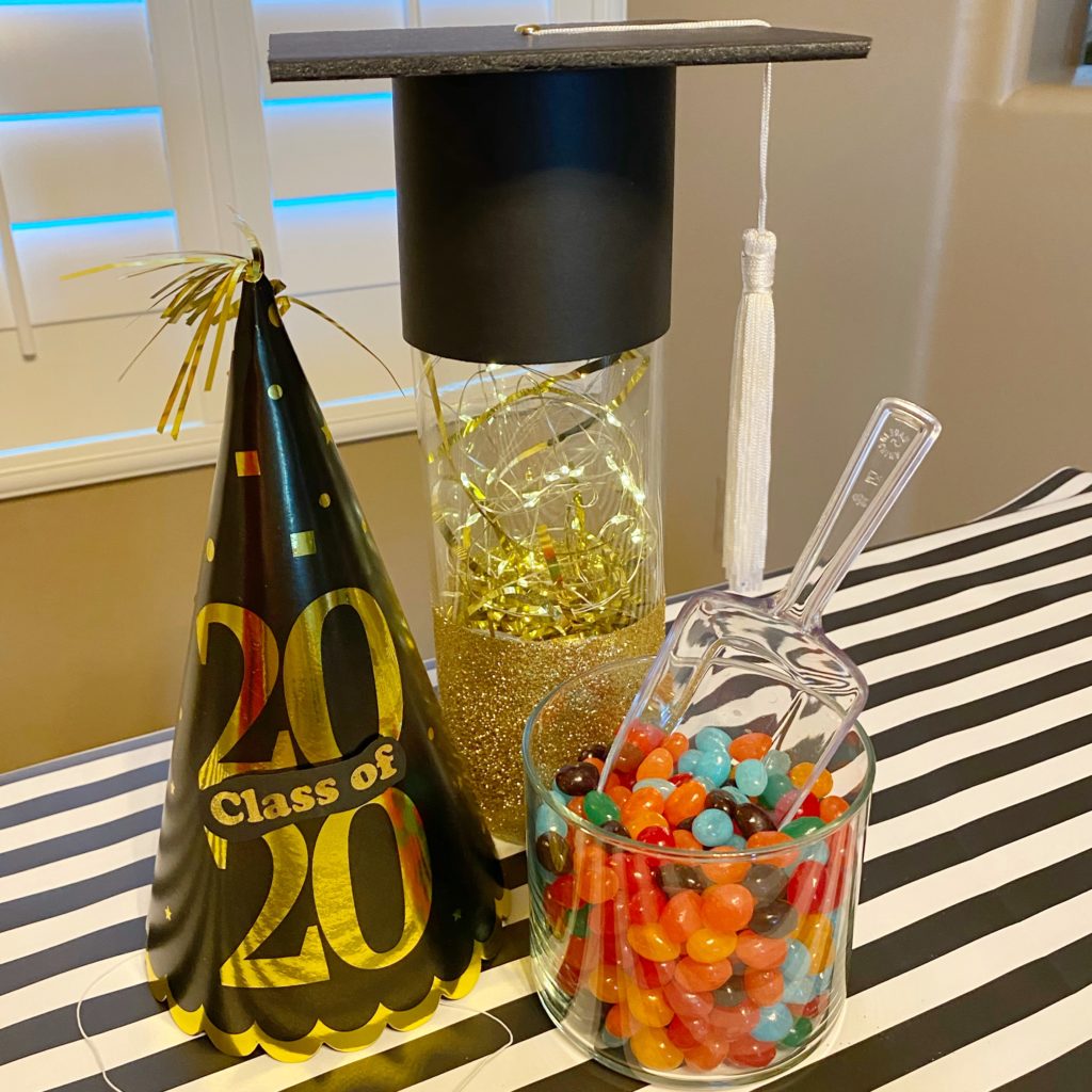 The hats make fun centerpieces and photo props. or even a favor. Unfortunately, my son was indeed in the Class of 2020, his party was canceled due to the pandemic, so I put the hats around the house.
